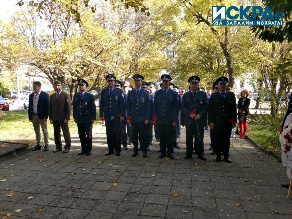 С речи и поднасяне на венци и цветя отбелязаха професионалния празник на полицията – 8 ноември служителите на реда в Бургас. Те отдадоха и почит към загиналите по време на изпълнение на своите задължения с едноминутно мълчание.