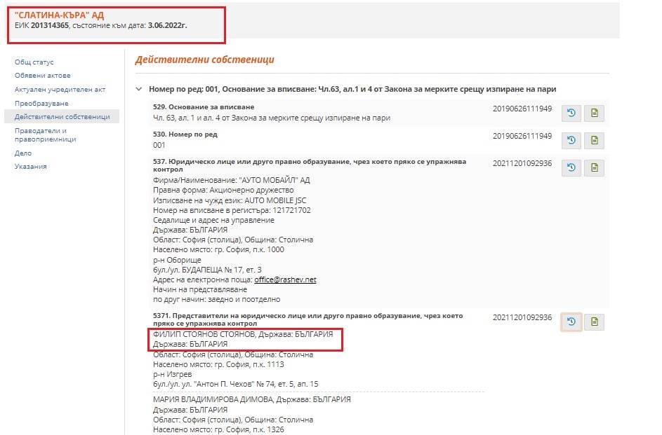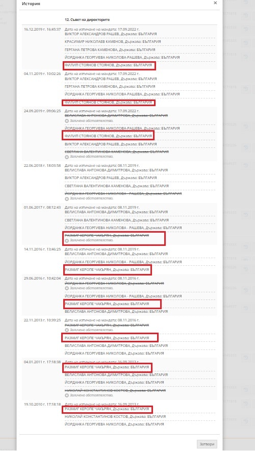 По времето, когато е била най-доходоносна /2015-2019 г./ управител е бил Филип Стоянов, който е бил в Съвета на директорите на борсата „СЛАТИНА-КЪРА“ АД. В същия Съвет се е намирал и Чакърян.