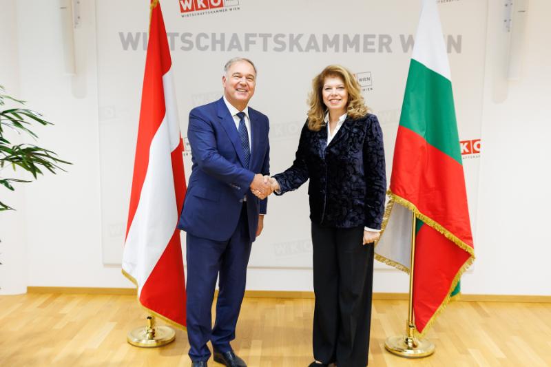 „Като външна граница на ЕС, България е една от най-сигурните“, подчерта тя. Австрийските инвеститори заемат второ място сред чуждестранните инвеститори в България, като австрийски компании работят в почти всички сектори на българската икономика. Виенската стопанска камара, която представлява над 150 000 компании, активно си сътрудничи с България, като фокусира усилията си върху развитието на Дунавския регион.