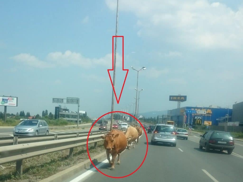 Крави се разхождат на Околовръстния път в София и създават опасност за шофьорите. Видеоклип с животните, публикуван във Facebook, провокира коментари и остри реакции. Зам.-кметът на Район „Витоша“ Кънчо Кънев коментира пред „NOVA“: