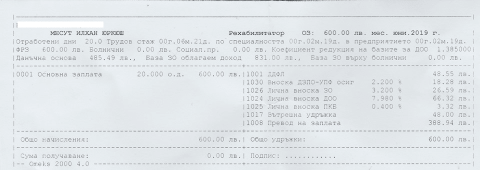 Младежът е споделил кадър на документ за заплащането си за месец юни. На него се вижда, че основната му заплата е 600 лева, от които след изваждането на всички удръжки остава да получи сумата от 388 лева.