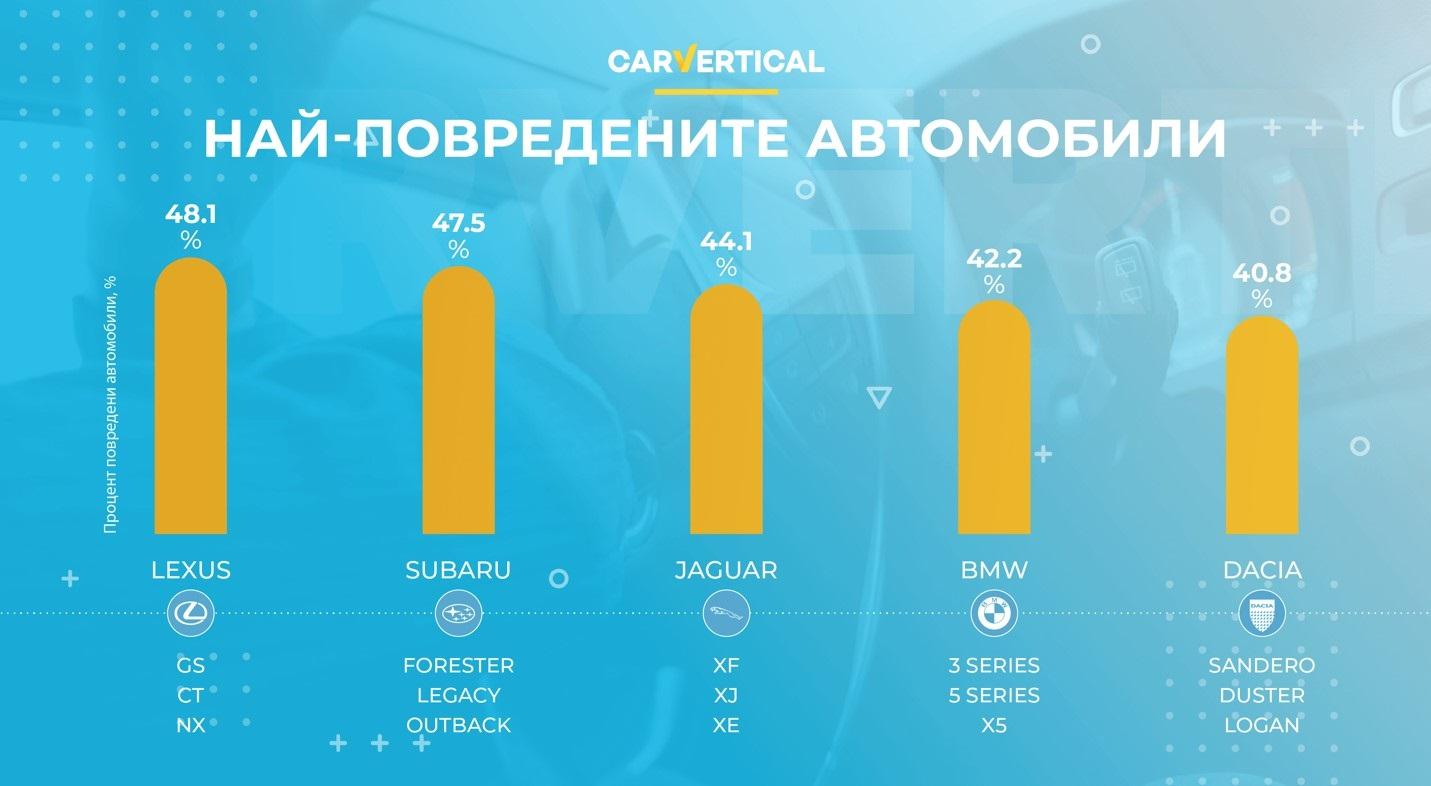 ТОП 5 на най-повредените автомобили. Снимка: carVertical