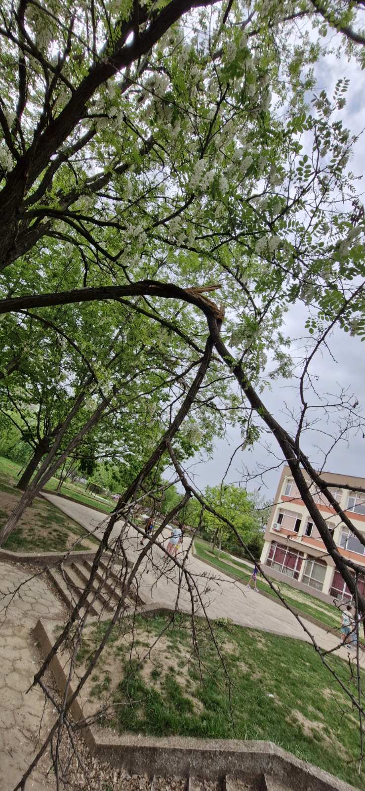 В редакцията на Искра.бг постъпи сигнал от Петър Генов, родител на дете, което учи в СОУ „Св. Климент Охридски“ в Плевен. Той твърди, че от два месеца никой не е отстранил надвиснал опасен клон, който е точно на входа на школото.