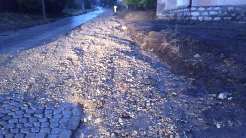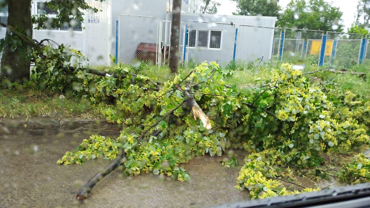 Поройният дъжд, придружен с ураганен вятър, наводни Лом, изрови градски улици и републиканския път II-11 (ул. „Ковачишка“), има и множество паднали дървета и скъсани ел. проводници. Това съобщиха от пресцентъра на Общината.