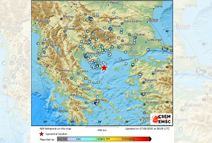 Земетресението е засечено в 22:50 часа и е било с дълбочина от 17 километра. Епицентърът му е бил на 32 километра източно от гръцкия град Сикия и на 139 километра изток-югоизток от Солун.