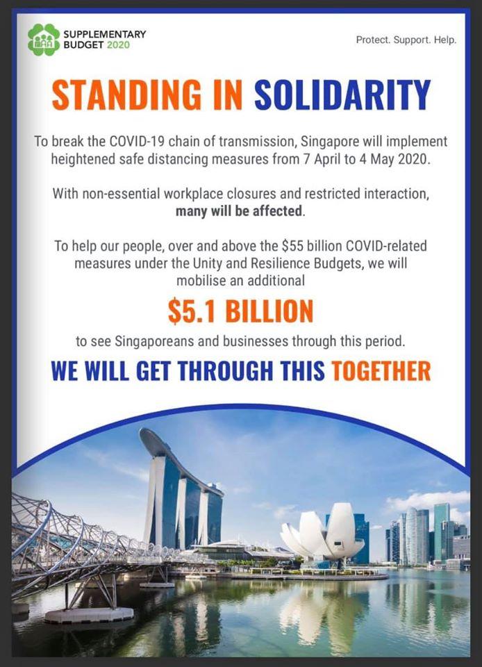 В рамките на 50 дни бяха изготвени три годишни бюджета – последователно. Те имат за цел да се справят с развиващата се бързо пандемия COVID-19 и нейното въздействие върху икономиката и обществения живот на Сингапур.
