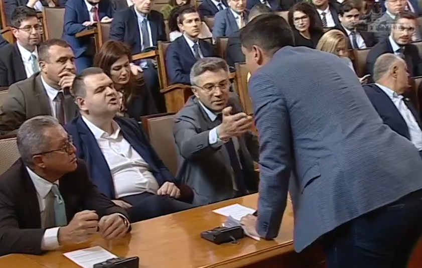 Слизайки от трибуната Василев застана пред банките на народните представители от ДПС и размени остри реплики с Делян Пеевски и Мустафа Карадайъ.