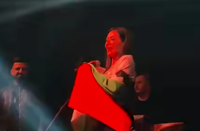 Концертът на сръбската попфолк звезда Цеца Величкович в северномакедонския град Велес бе прекъснат след скандал, предизвикан от появата ѝ на сцената, загърната с българското знаме. Видеоклип от събитието, разпространен масово в социалните мрежи, показва момента, в който изпълнителката на хита „Трепни“ предизвиква бурни реакции сред публиката в спортна зала „Гемиджии“.