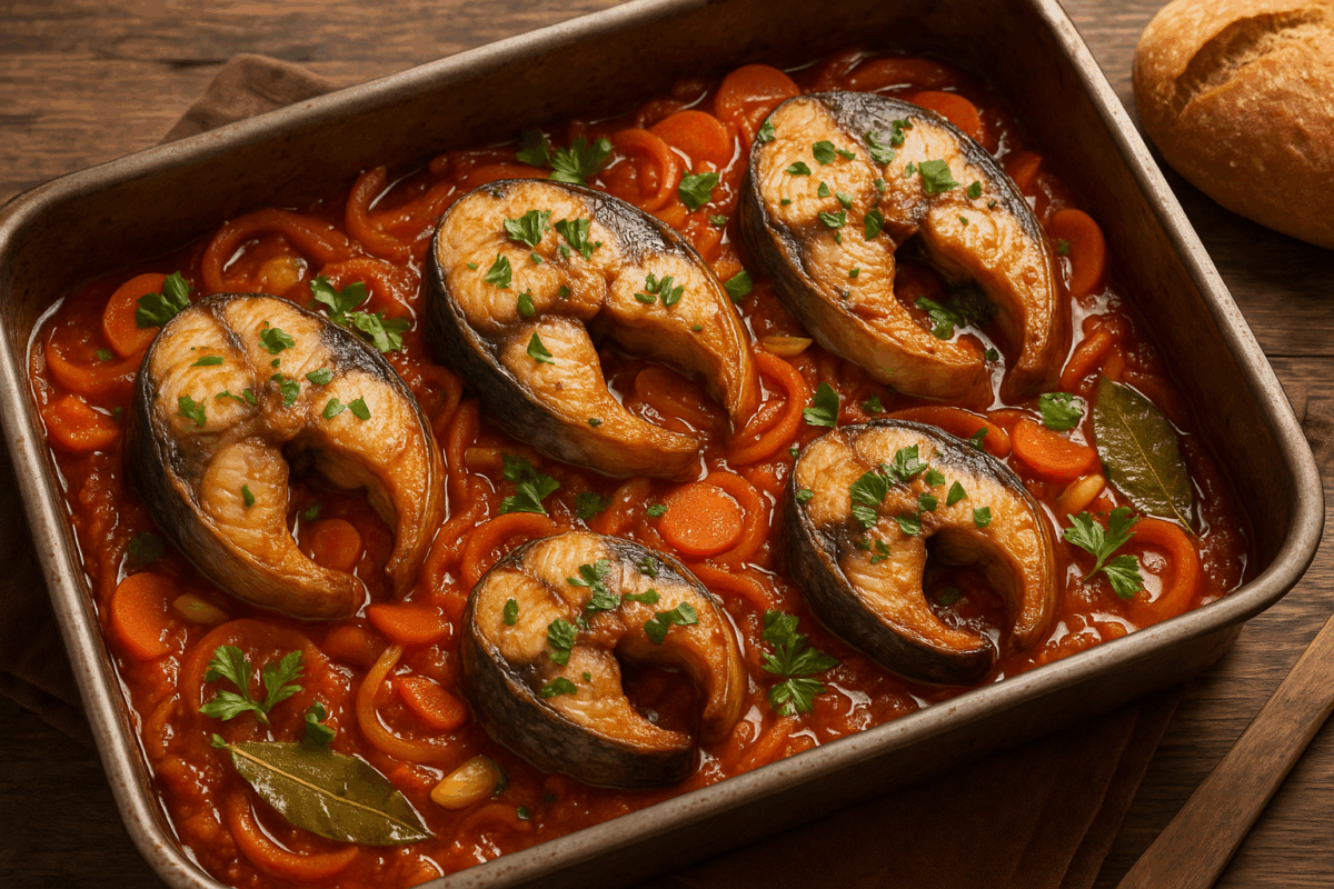 Аромат на печен лук, домати и риба – това е едно от онези ястия, които ни връщат във времето, когато всичко беше по-просто, но и по-вкусно. Скумрия плакия е класика в българската кухня – ястие, което съчетава богатите вкусове на морето с балканска простота и топлина. Приготвя се лесно, изисква малко съставки, но резултатът е неустоим.