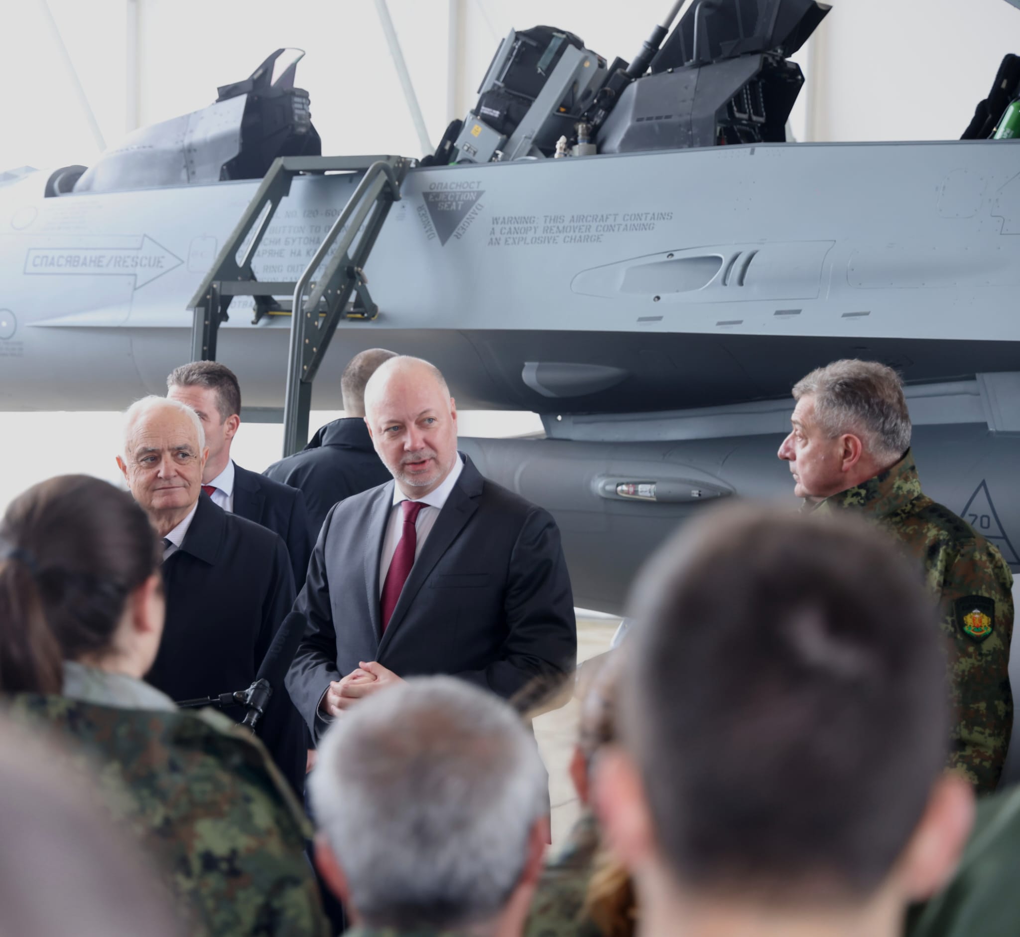 Днес получаваме първия от най-модерните самолети в бойната авиация, след като 35 години България няма новопридобит боен самолет в редиците си, заяви министър-председателят Росен Желязков на церемонията по приемането на първия самолет „F-16 Block 70“ в авиобаза „Граф Игнатиево“. Той е категоричен, че реализирането на проекта за придобиването на новите бойни машини е символ на стратегическото партньорство между България и Съединените американски щати.