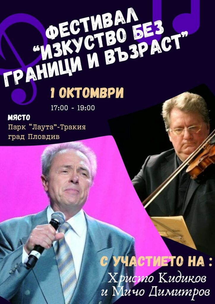 На 1 октомври от 17:00 часа в Международен ден на музиката и поезията в парк „Лаута“ ще се проведе фестивалът „Изкуство без граници и възраст“, съобщиха от Общината.