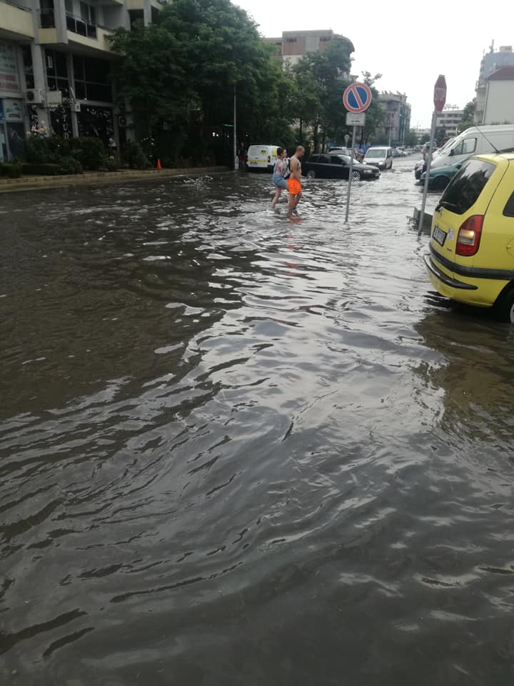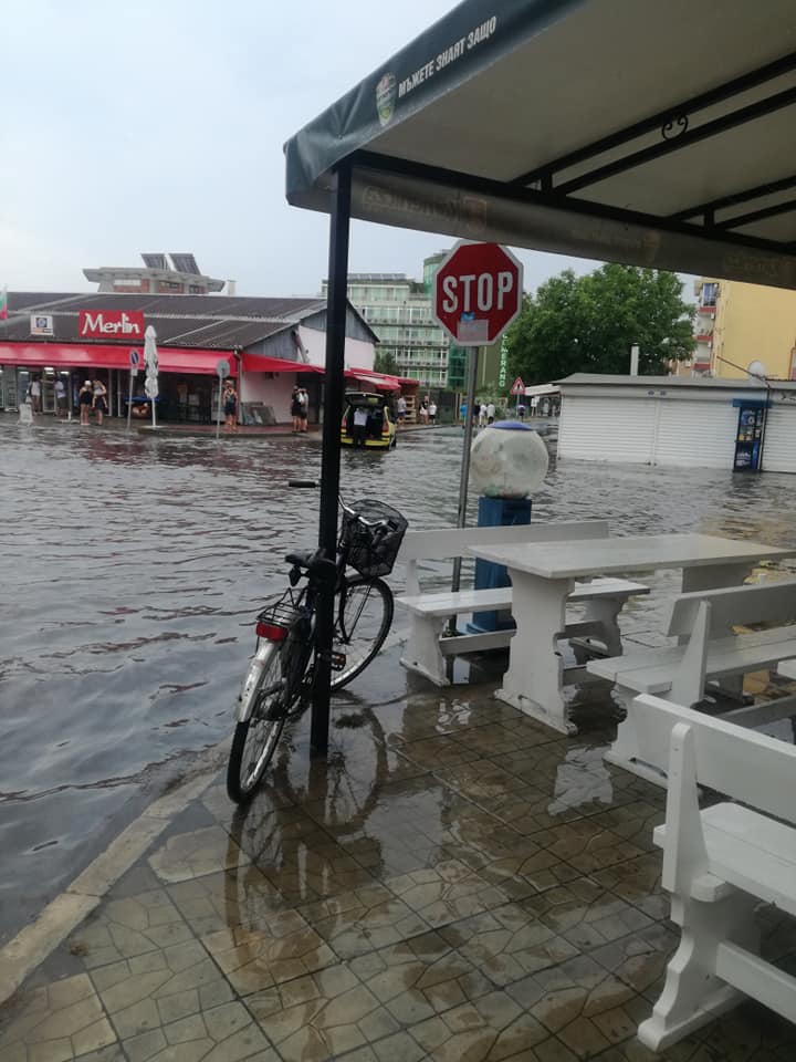 Улици в Слънчев бряг са под вода след поройния дъжд, който се изсипа по-рано днес. Потребители на социалната мрежа Facebook публикуваха снимки и видеа на наводненията. И шегите започнаха веднага: