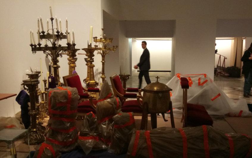 Според кадрите редовете с дървени столове, нефът (издължено помещение) и големият кръст на олтара изглеждат спасени от пламъците. Седем часа след тяхното избухване обаче около него все още се издига дим.