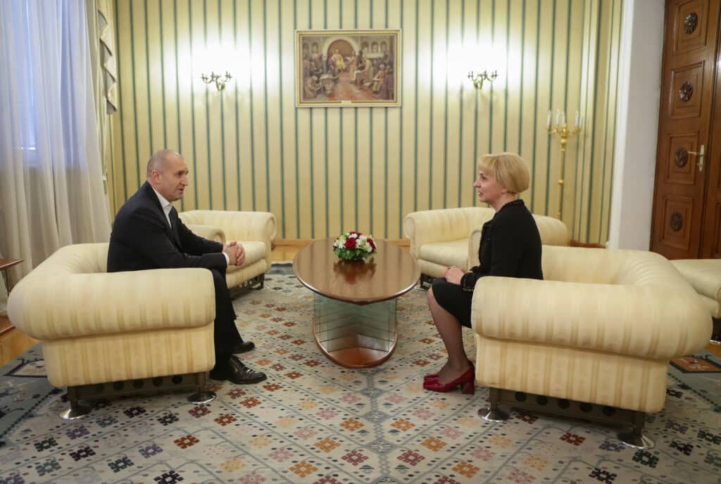 Президентът Румен Радев проведе среща с омбудсмана на Република България Диана Ковачева, чийто пост е сред посочените в чл. 99, ал. 5 от Конституцията във връзка с процедурата по назначаване на служебен министър-председател.