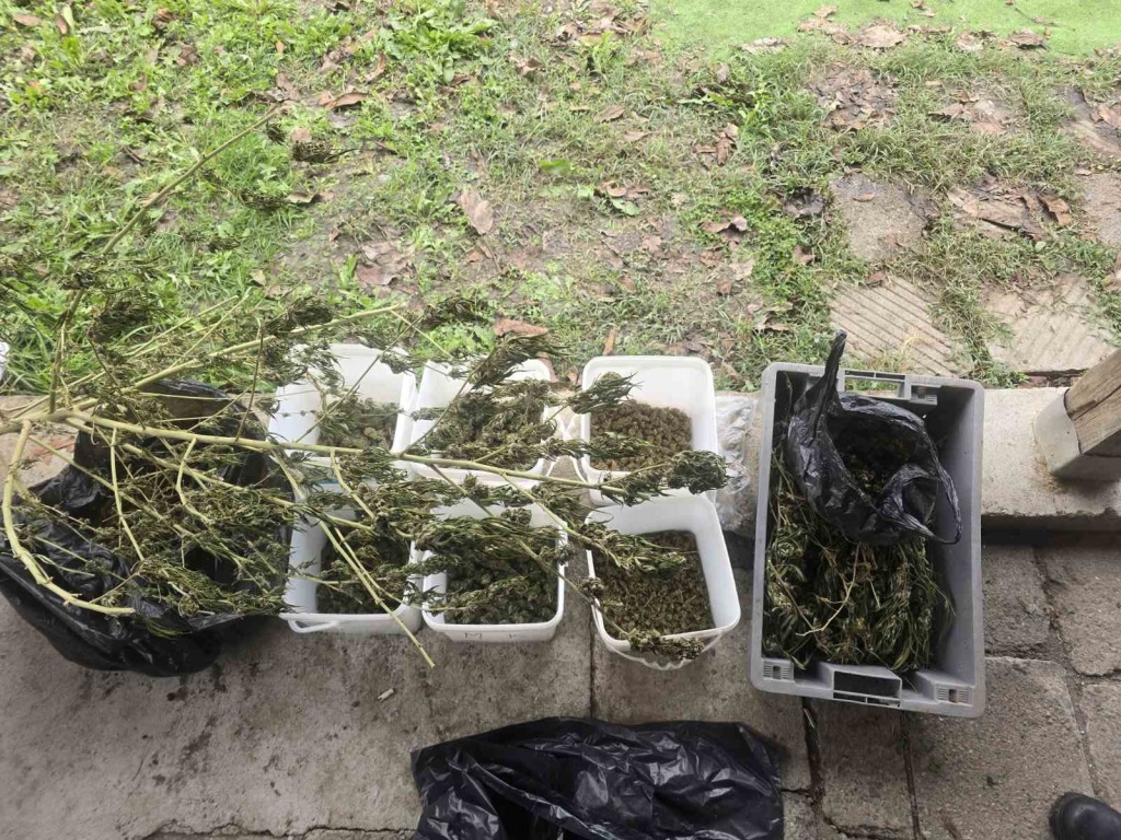 Там полицаите са намерили и иззели приблизително 2 килограма марихуана, съхранявана на различни места – в пластмасови кофи, пластмасова касетка и полиетиленови торби. Открито е и конопено растение с височина около 160 см.