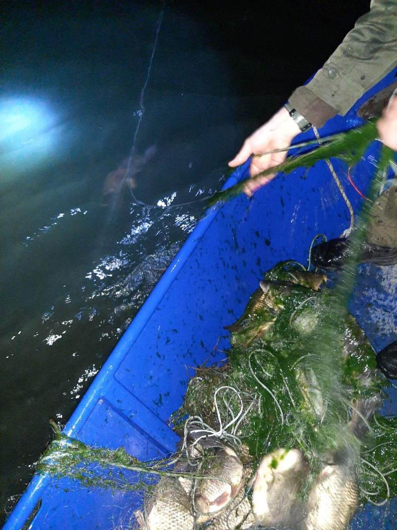При друга проверка на язовир „Мандра“ са установили и извадили от водата девет броя мрежи, поставени в работно положение, с обща дължина 420 метра. Уловената в тях риба от вида сребриста каракуда – 50 кг., е била освободена и върната обратно във водата.