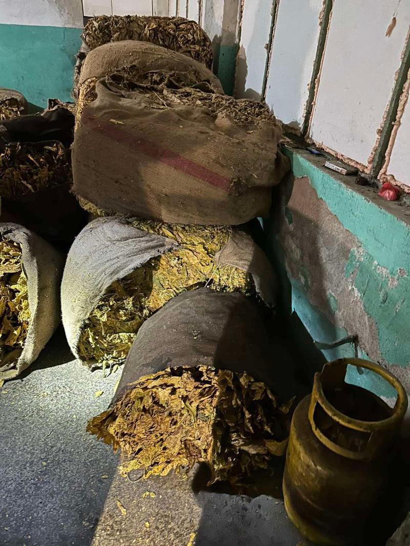 В хода на процесуално-следствените действия са били иззети две машини за рязани на тютюн, три 25-литрови бутилки за газ пропан бутан, електронна везна и пликове за съхранение на обработен тютюн. Общото количество установен и иззет тютюн е 1500 кг на листа и около 2 кг ситно нарязан. Петимата „работници“, четирима от които с предишни криминални прояви, са били задържани за срок до 24 часа.