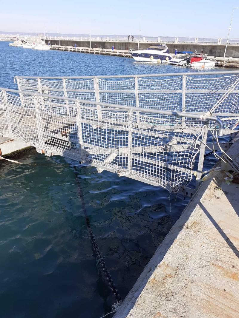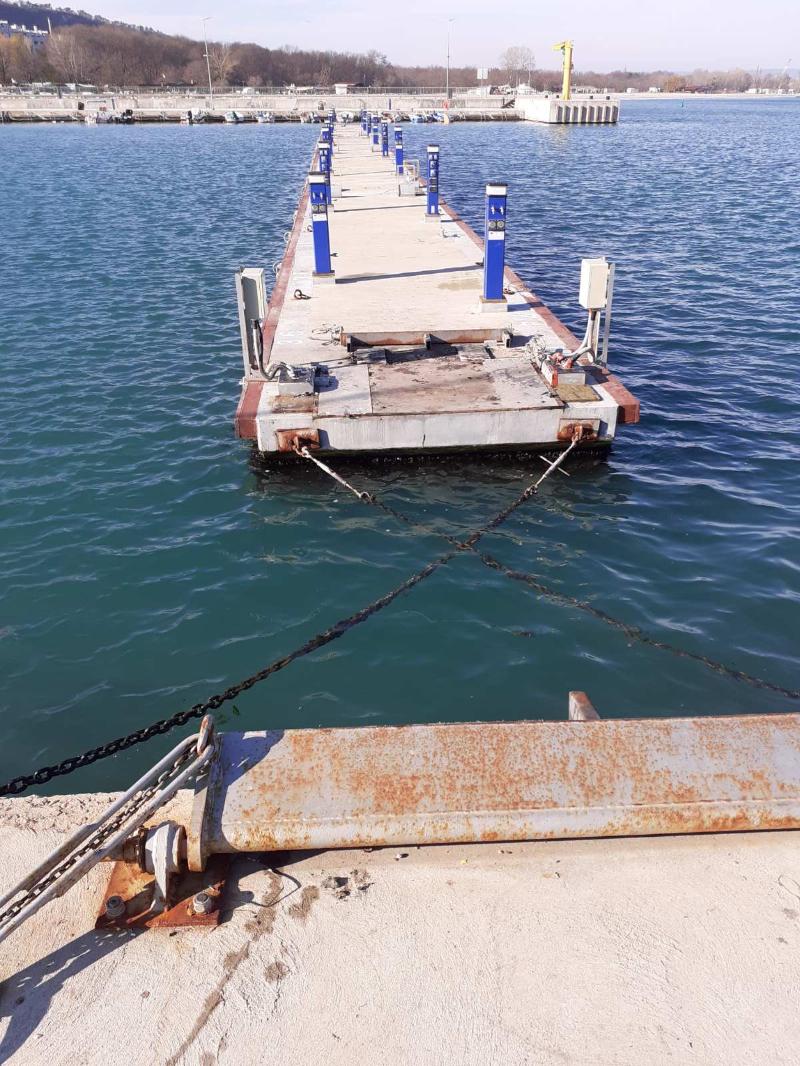 След извършен водолазен оглед е констатирано скъсване на елементите, които закрепват понтоните, информираха от местната. Заради скъсани елементи е премахната и сходнята, която представлява връзката от кея към понтона Благомир Коцев е категоричен, че ще сезира съответните органи, ако се установи, че длъжностни лица не са упражнили задълженията си за контрол.