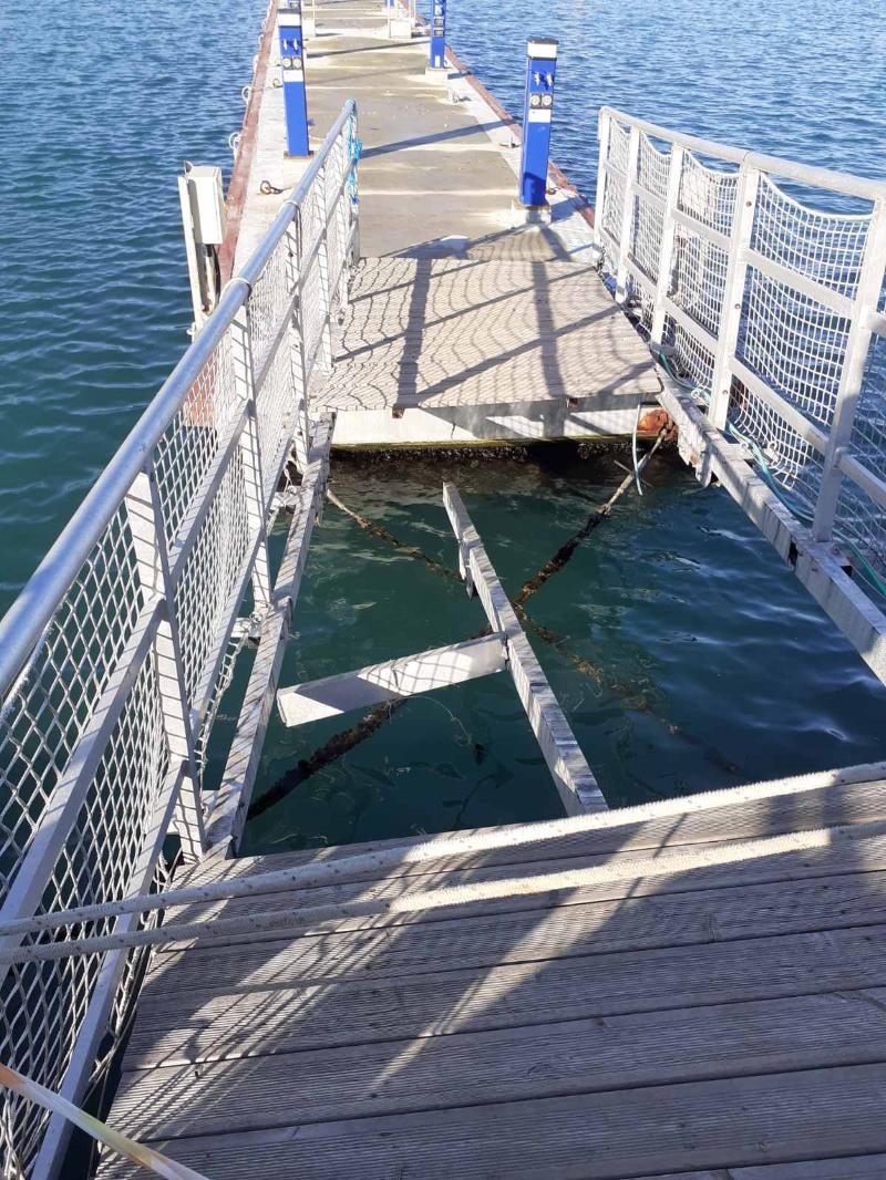 По данни на Младен Иванов, след бурята е бил изместен и единият от четирите елементи от конструкцията на понтона. В резултат на това е възложен водолазен оглед. При него е констатирано скъсване на елементите, които закрепват понтоните, прекъсване на кабели и скъсани елементи от сходнята, която представлява парапетът, свързващ кея с понтона.
