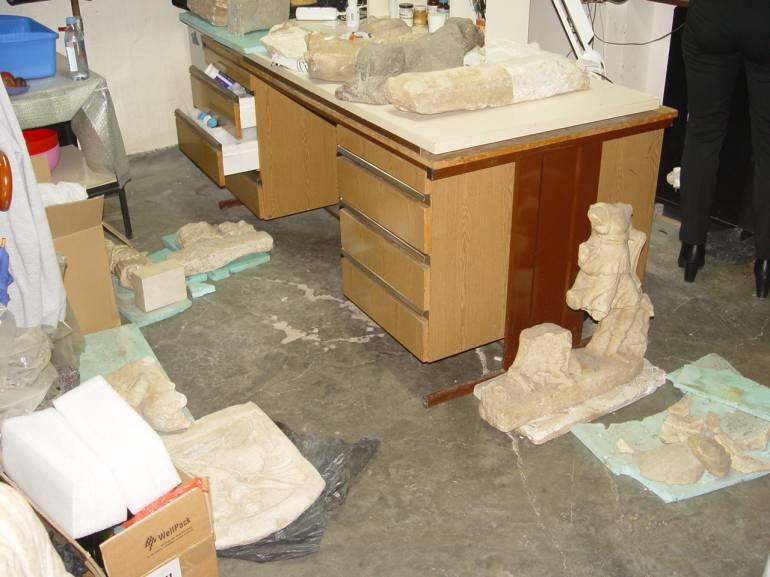В приземни помещения в сградата са намерени и иззети множество нови предмети, които са с неизяснен произход и в нереставриран вид.