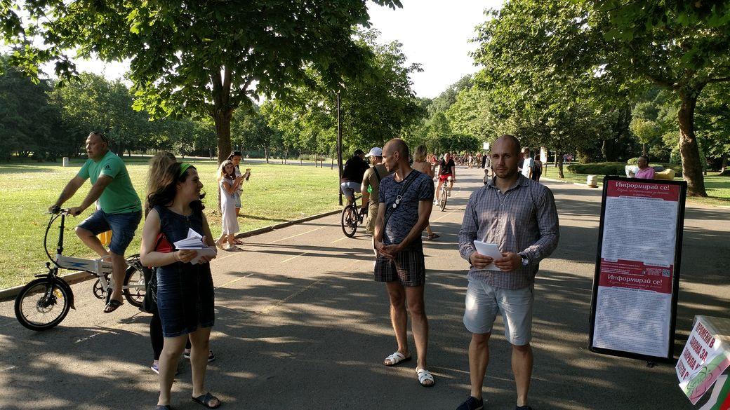 Първата среща се проведе в неделя. Бяха раздадени стотици брошури и бяха проведени десетки разговори. Отговорник на събитието бе Бисер Русимов, който е и част от ОЗБГ. Случайни граждани също се включиха в раздаването на листите и помогнаха за добрата организация.