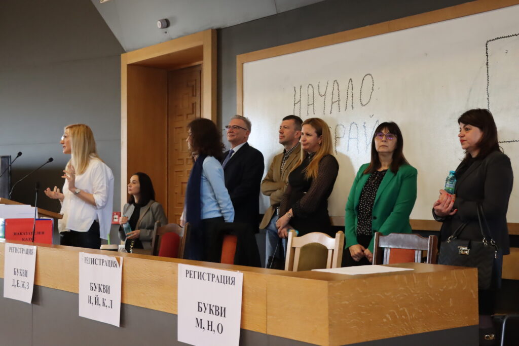 В присъствието на членовете на конкурсните комисии и на кандидати и от трите аудитории, се изтеглиха казусите по гражданскоправни и наказателноправни науки, както и теста по Право на Европейския съюз в областта на правата на човека, които кандидатите ще решават. Писменият изпит продължава 5 астрономически часа, като в тях не се включва времето за прочитане и раздаване на казусите и теста.