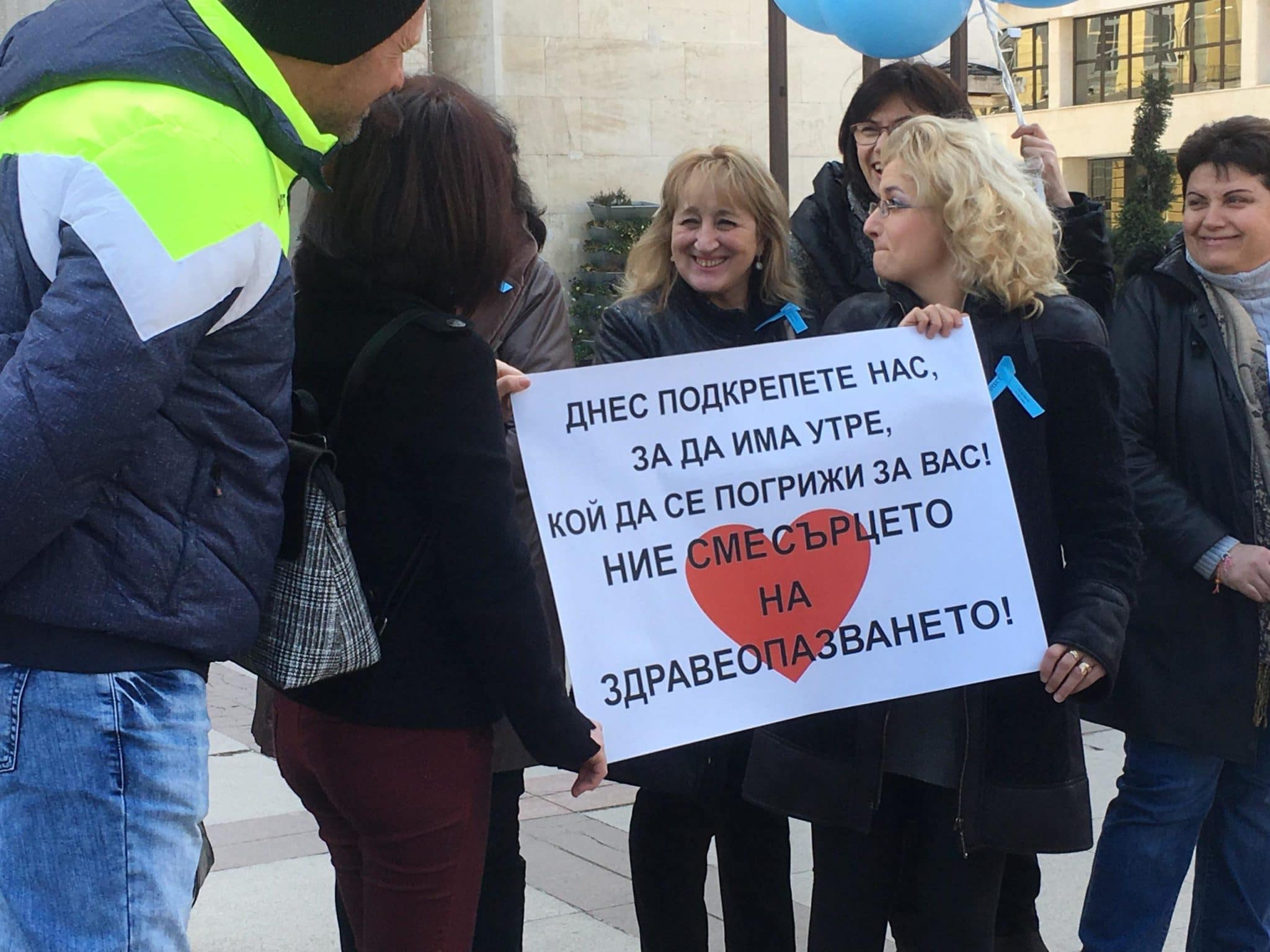 Стотина специалисти по здравни грижи се събраха на пред общината в Бургас и пред университетската многопрофилна болница, за да изразят недоволството си от ниските възнаграждения. Те носеха плакати с надписи „Днес подкрепете нас, за да има утре, кой да се грижи за вас! Ние сме сърцето на здравеопазването“ и „Не ни прогонвайте в чужбина, защото ако всички си тръгнем, здравеопазването умира“.