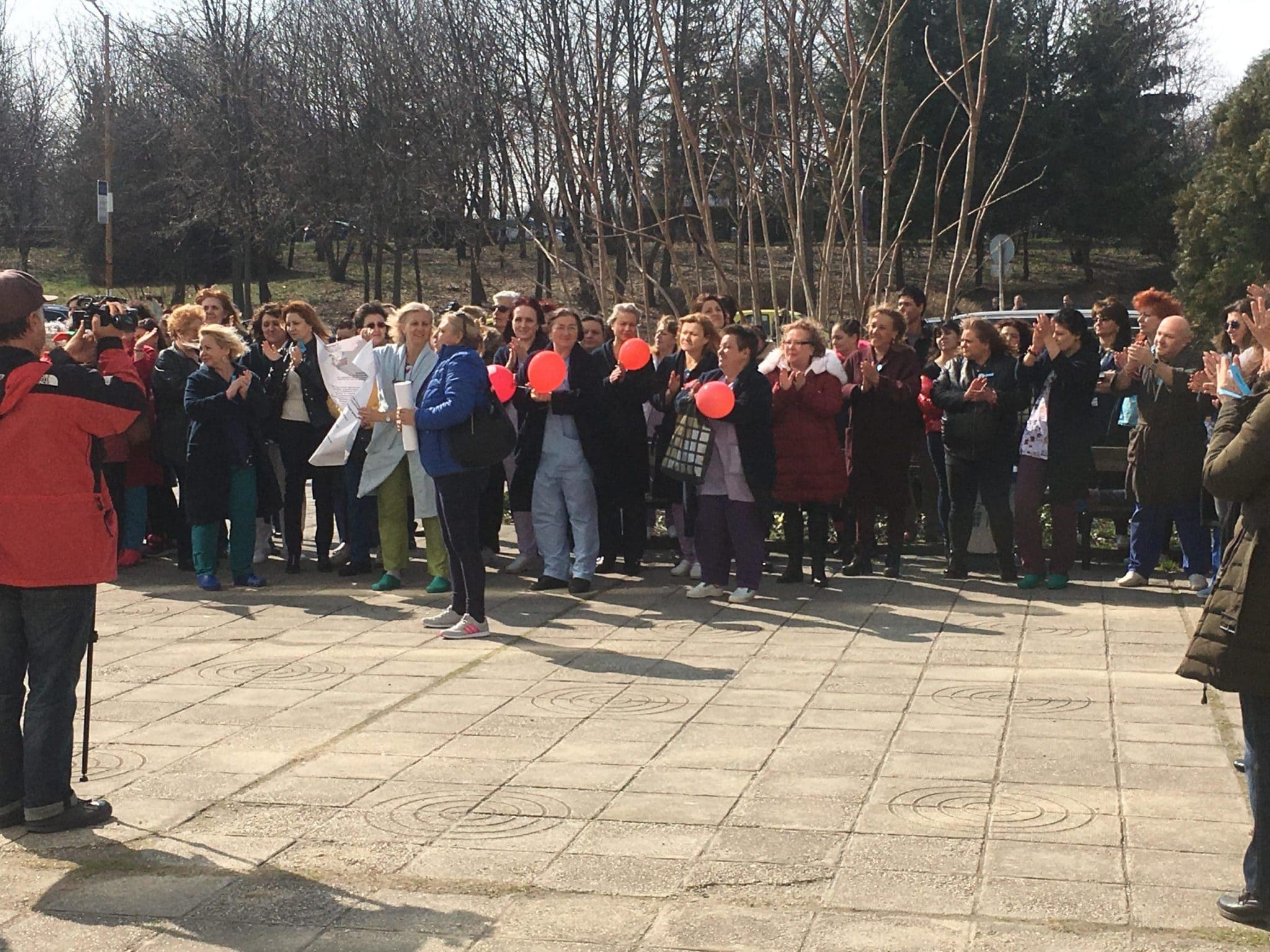 На протеста на медиците пристигна и тяхна колежка, заминала да работи в чужбина. Тя беше приветствана с аплодисменти.