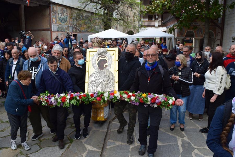 С цел да се избегне струпване на хора, за първи път иконата не беше поставена на специална носилка. Тя беше изнесена на ръце от двама души, а по 3-километровия път към „Клувията“ миряни се редуваха да я носят. По-късно иконата ще бъде върната обратно в Бачковския манастир.