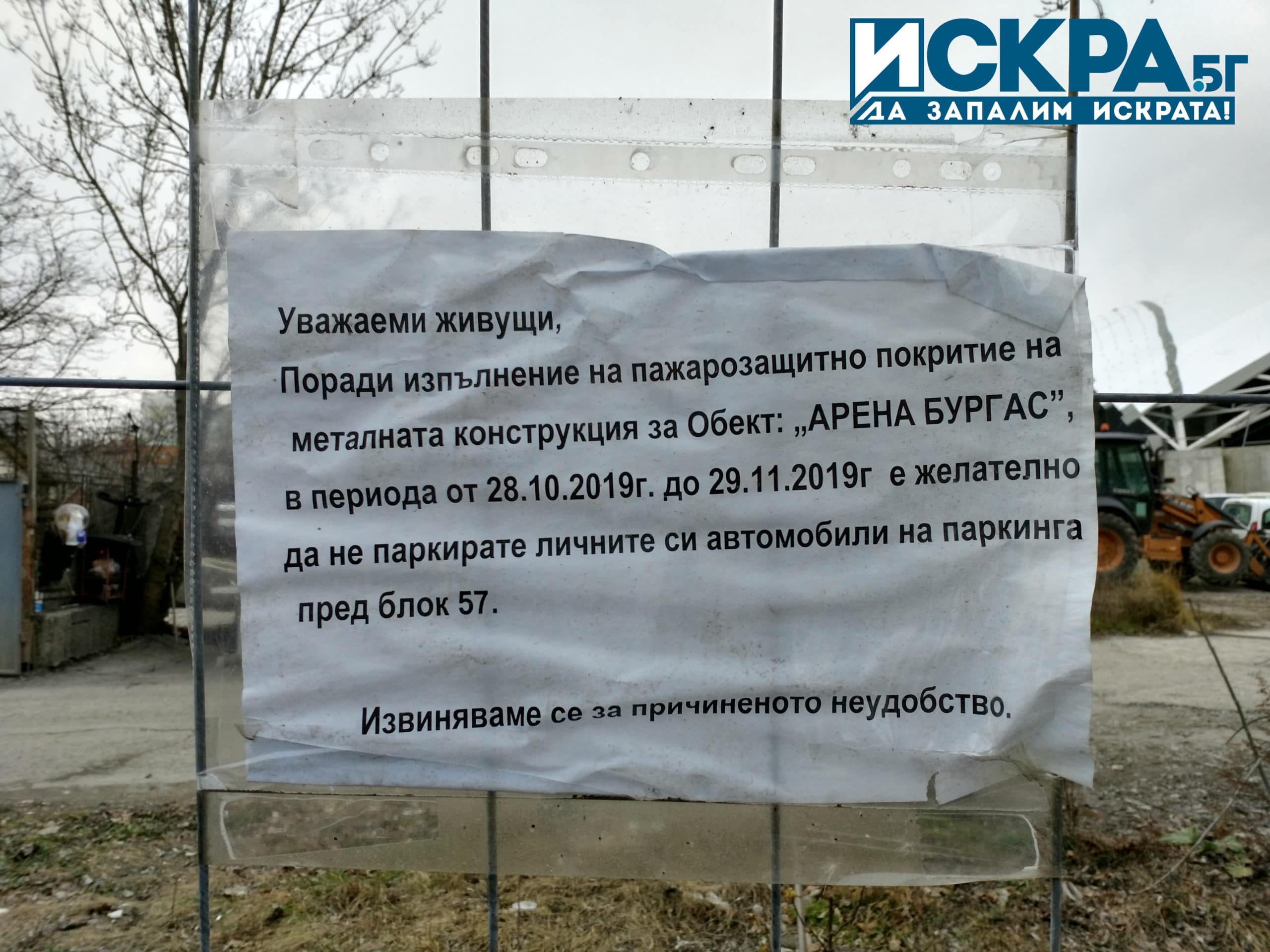 Бургазлии твърдят, че строежът на новата спортна зала „Арена Бургас“ създава проблеми на живущите в близост до обекта и на онези, които паркират автомобилите си около мястото. За проблема сигнализира гражданин на града. Пред Искра.бг разказа: