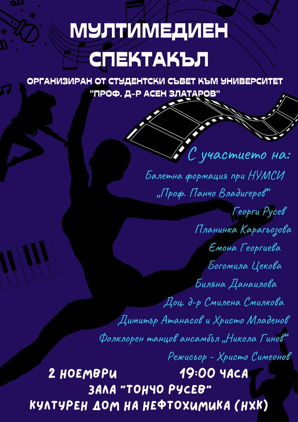 На 2 ноември от 19:00 часа в Културния дом на нефтохимика в самия център на града ще се проведе концерт, с който студентите от ВУЗ-а ще отдадат чест на българските будители – някогашни и съвременни, които поддържат пламъка на знанието, науката и творчеството.