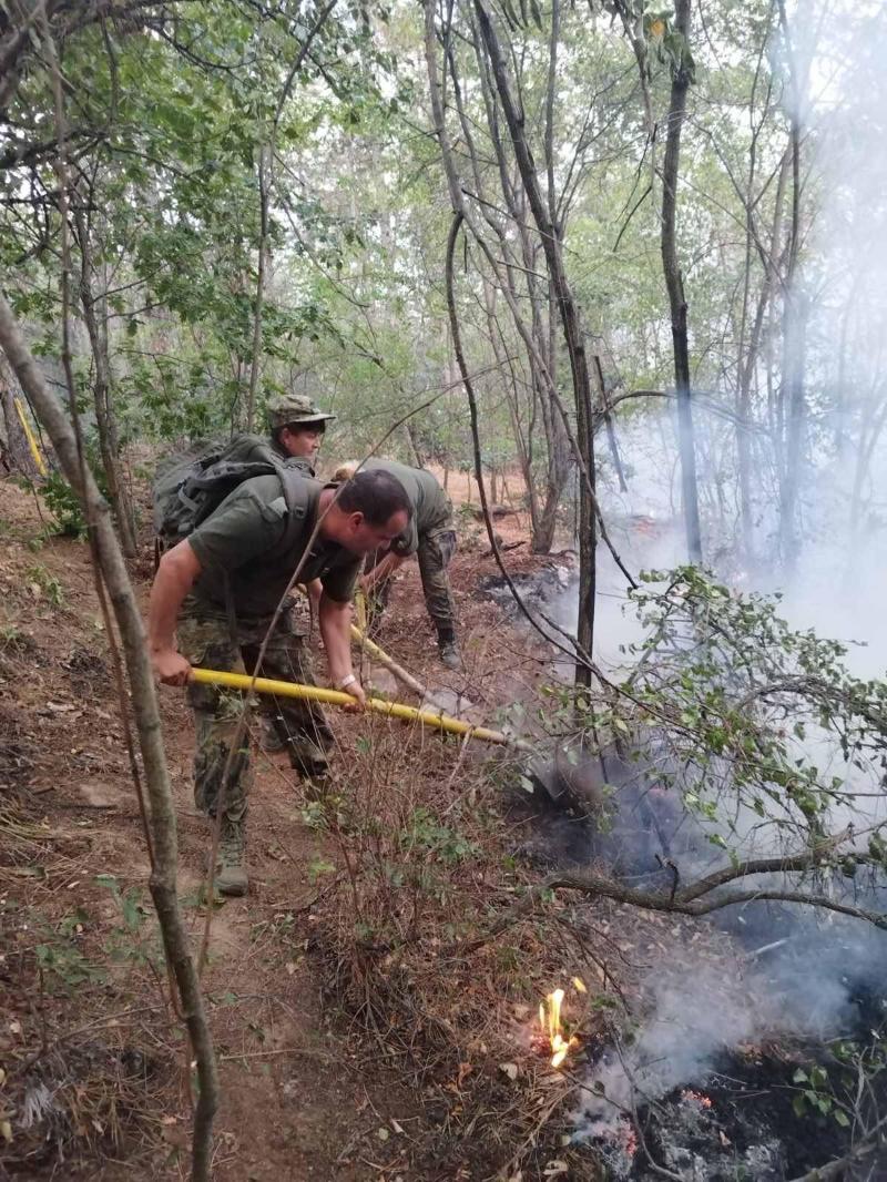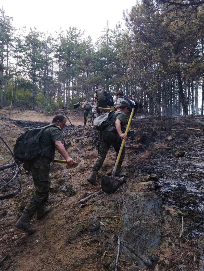 През вчерашния ден 37 военнослужещи с 9 единици специализирана техника и медицински екип от формированието за овладяване и преодоляване на последствията при бедствия на 61-ва Стрямска механизирана бригада, под ръководството на майор Иван Кибритев – командир на зенитно-ракетен дивизион на бригадата, оказваха помощ в гасенето на пожар, който гори в борова гора в землището на село Михилци.