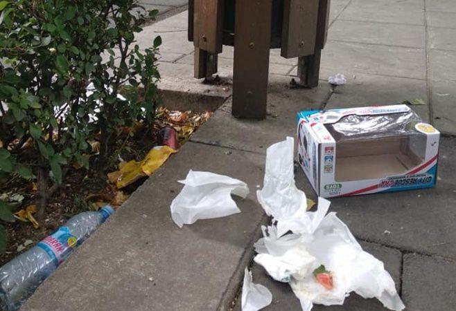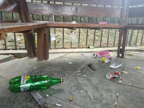 На снимките се виждат изхвърлени бутилки от алкохол, кашони и опаковки от хранителни изделия. Постът е събрал десетки реакции и коментари за отрицателно време.
