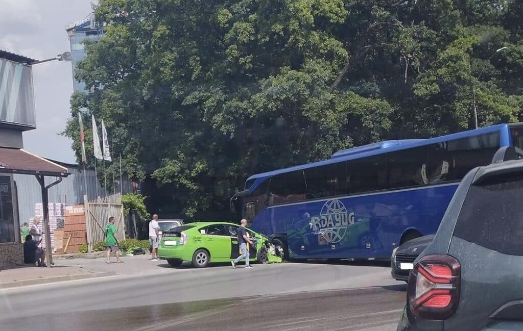 Таксиметров автомобил и автобус, в който са пътували деца, са се сблъскали в столицата, съобщи „БТА“.