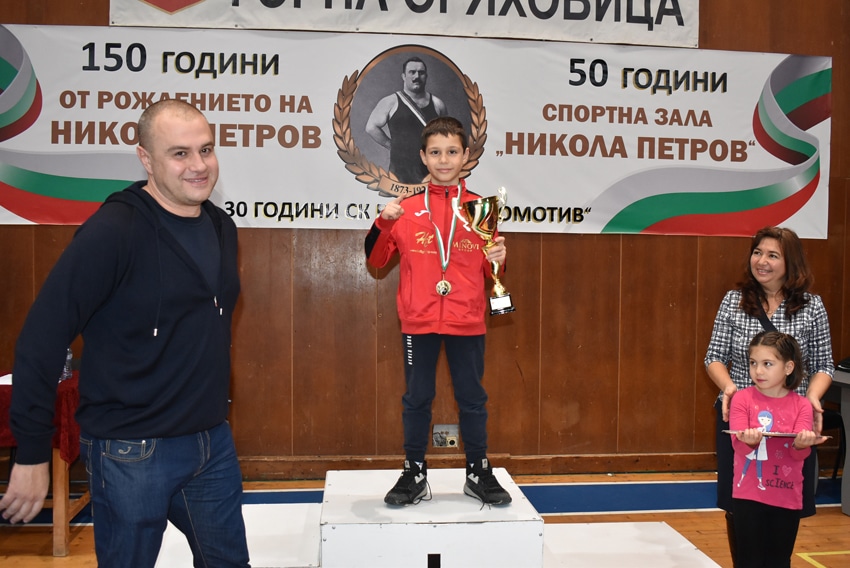 Купа „Никола Петров“ бе връчена на шампиона в най-леката категория до 26-килограмовите Митко Минов /“Локомотив“, Г. Оряховица/.