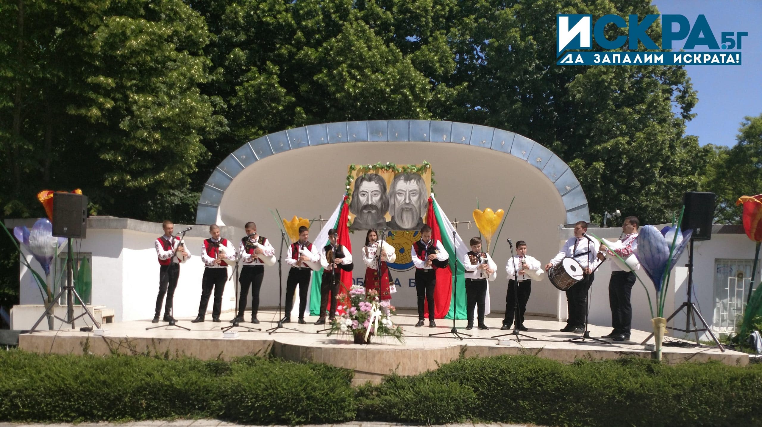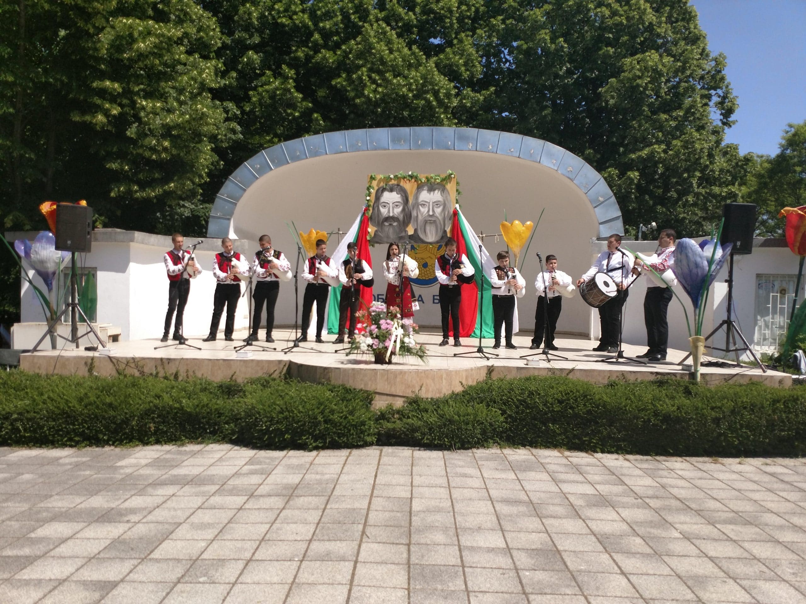 На красиво украсената сцена днес и на фона на ликовете на светите братя, първи на сцената се качиха Гайдарски състав към СУ „Добри Чинтулов“.