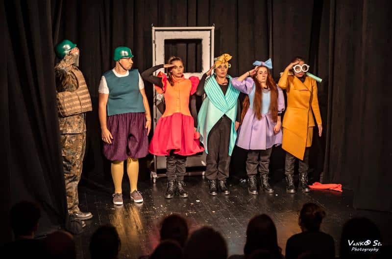 Осем млади актьора, завършили класа на Теди Москов съставят бойните редици на “Хенд” и влизат в битка за сърцата на публиката. Разказват как бунтът на един актьор превръща “Снежанка и седемте джуджета” във военна приказка. Всичко в това представление е неочаквано и различно. Стилът, актьорската игра, костюмите, сюжетът. Една комедия за безсмислието на войната, създадена с много любов от екип талантливи съмишленици.