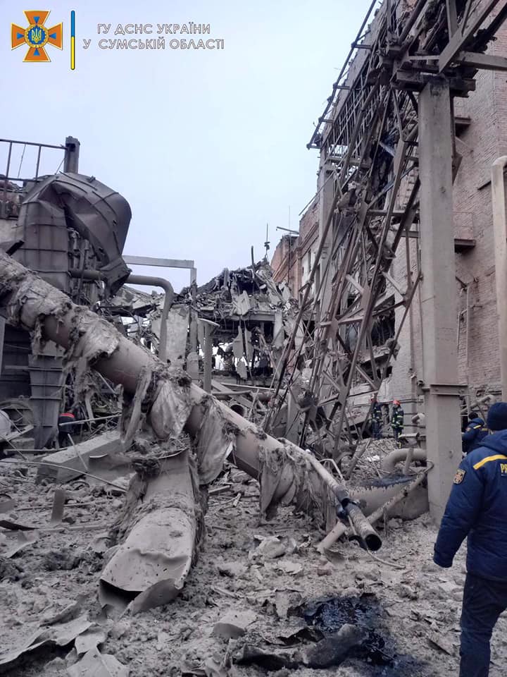 ТЕЦ-ът в град Ахтирка е бил поразен вчера. Днес под разрушенията не са били открити пострадали. Наложило се е работата на спасителите да бъде преустановена заради заплаха от поредна въздушна атака.