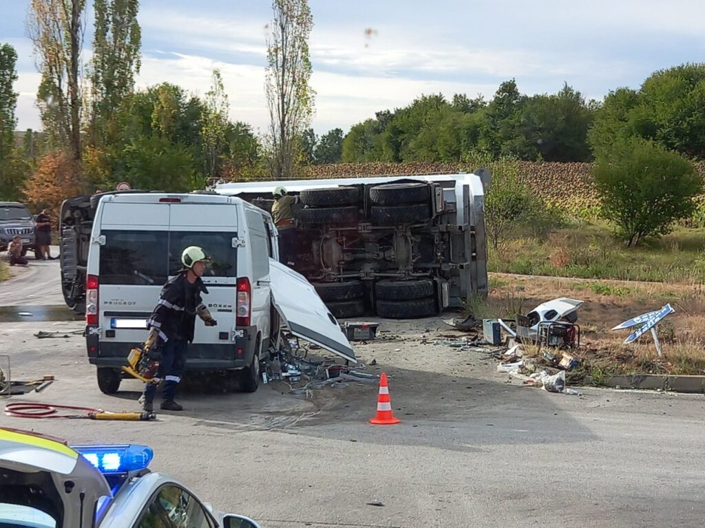 От пресцентъра на Агенция „Пътна инфраструктура“ съобщиха, че временно е затруднено движението на кръстовището между път III-401 Ловеч – Микре и III-307 Угърчин – Микре. От кадри, разпространени във Facebook, се вижда камион обърнат настрани и микробус, по който са нанесени материални щети. Към момента няма информация за състоянието на участниците в произшествието.