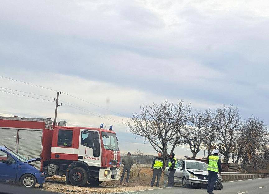 Злополуката е възникнала след 14:00 часа днес след разклон за Коматево в посока Асеновград. По предварителни данни лек автомобил „Фолксваген” е предприел изпреварване и е навлязъл в насрещната лента. Последвал е страничен сблъсък с джип „БМВ“ и челен – с движещ се зад него лек автомобил „ДЕУ“.
