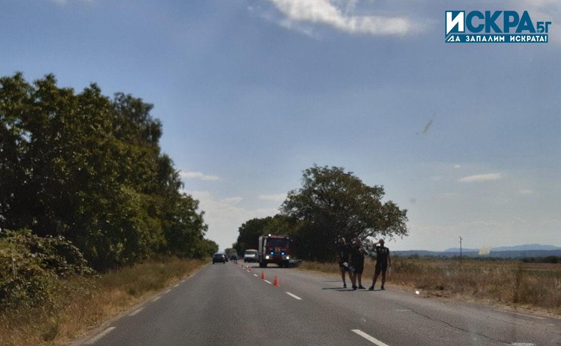 Искра.бг научи, че са се сблъскали джип, лек автомобил и микробус. На местопроизшествието има екип на „Пожарна безопасност“, „Полиция“ и „Пътна помощ“.