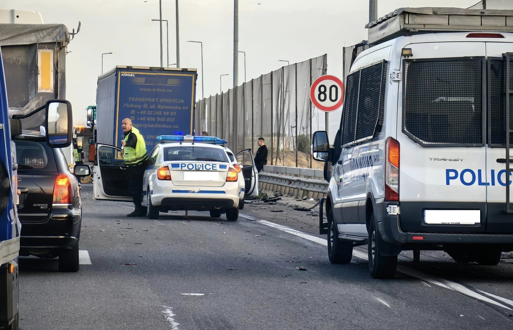 Временно движението по Северната скоростна тангента в посока Ботевград се осъществява в една лента. Пътни полицаи подпомагат трафика и предвид образувалото се в участъка задръстване пренасочват водачите при разклона за Чепинци.
