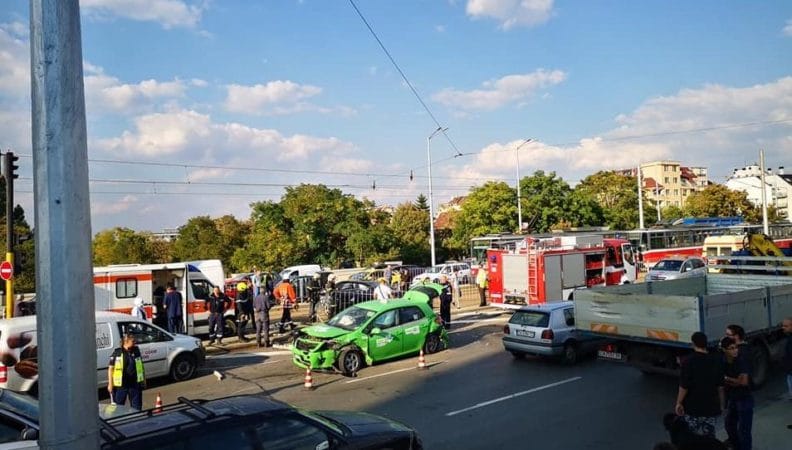 Блъснали са се лека кола и такси. Според непотвърдена от полицията информация пострадалите са трима. Единият шофьор е с контузия на ръката и гръдния кош. 25-годишна жена е с хематом и контузия на главата. С най-големи наранявания е 52-годишна пътничка. Тя е с контузии на гръбначния стълб и гръдния кош. Откарана е в противошокова зала на УМБАЛ „Царица Йоанна – ИСУЛ“