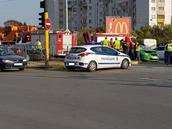 На мястото са пристигнали екипи на пожарната и Бърза помощ. Движението на трамваите в района е затруднено.