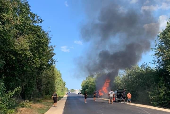По първоначални данни става въпрос за камион за смет, който за минути се е обърнал и запалил.