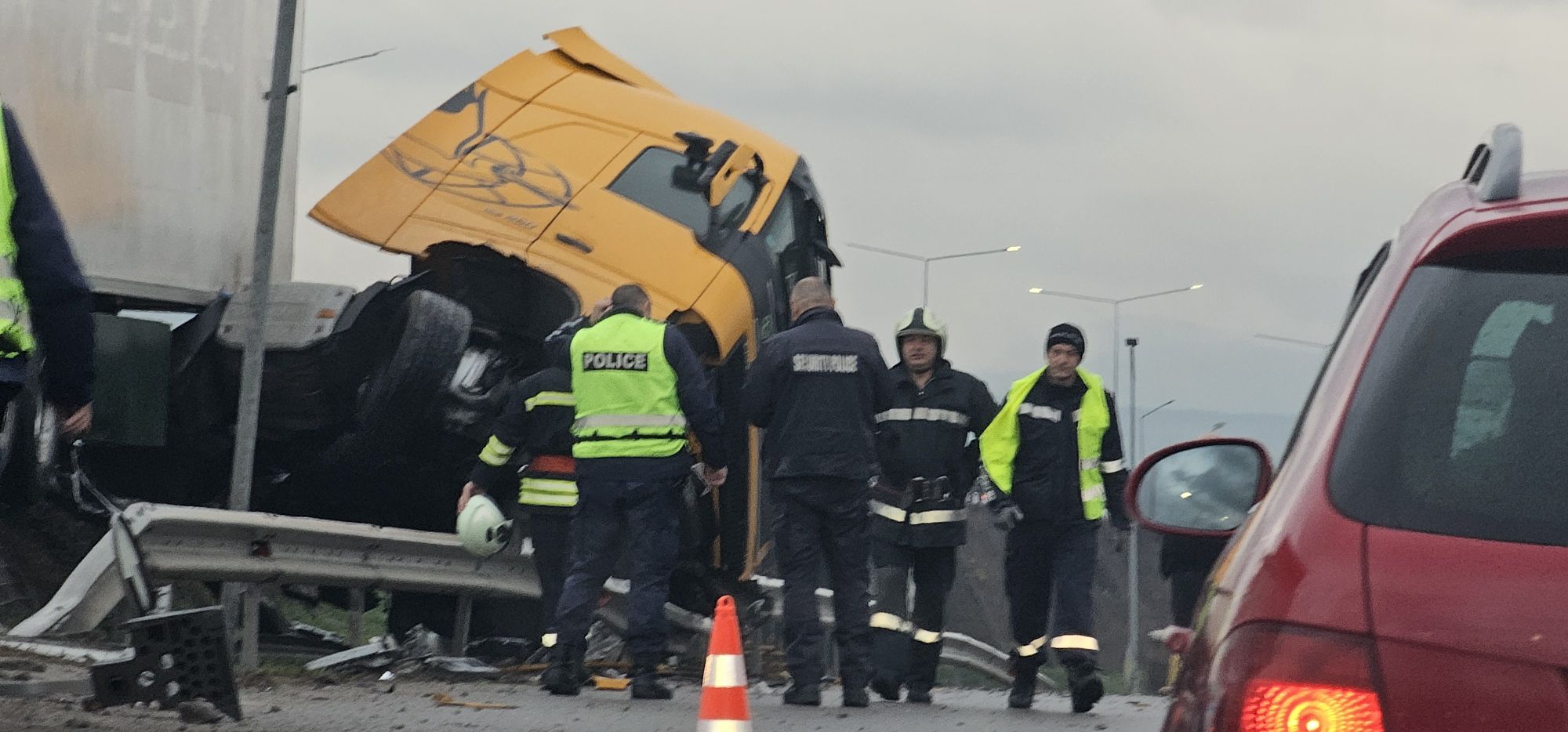 Към момента няма информация дали водачът е пострадал. В района на местопроизшествието има екипи на полицията.