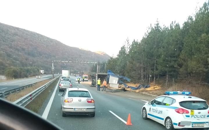 Тежкотоварен автомобил се обърна на автомагистрала „Хемус“ тази сутрин. Инцидентът е станал около 07:10 часа в района на Жерково в посока София, съобщиха от МВР. За щастие няма пострадали.