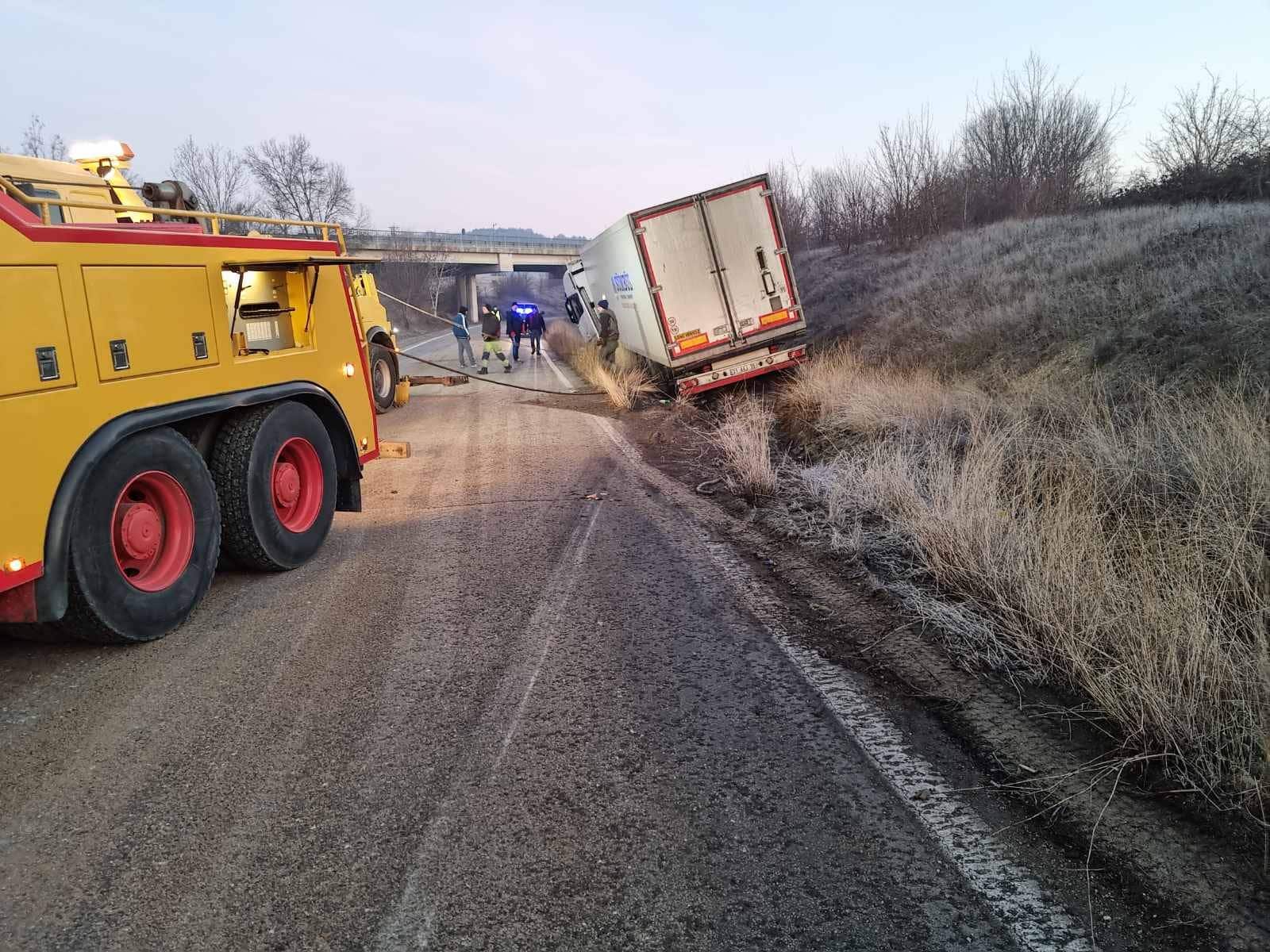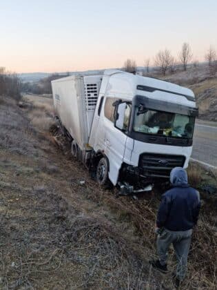 Тир е излязъл извън пътното платно, блъснал се е в мантинели и е пропаднал в канавка във Великотърновско, предава „NOVA“.