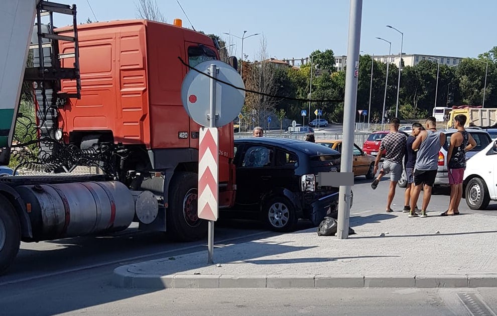 Тир е ударил лек автомобил във Варна. Инцидентът е станал този следобед на кръговото кръстовище до „Максуда“. Това съобщиха в социалната мрежа Facebook очевидци, които публикуваха и снимков материал.