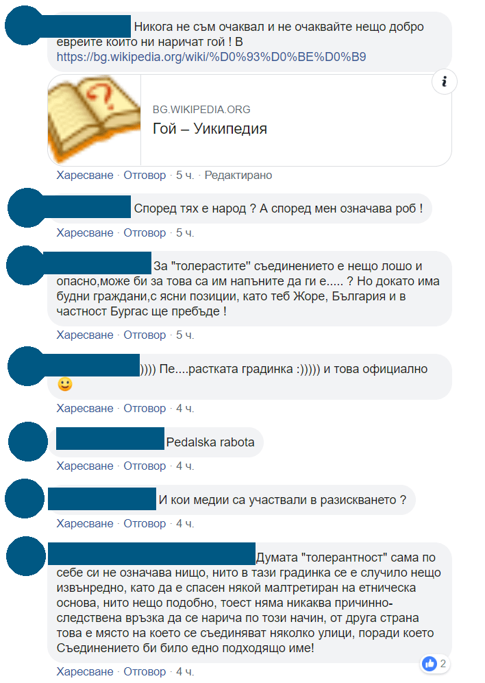 „“Парк на толерантността“! Така ще се казва градинката пред х-л „България“ в центъра на Бургас. Докато местните медии обсъждаха предложението на комитет от граждани и историци това пространство да се нарече на Съединението на България, оказа се че еврейската организация скрито от медиите е убедила повечето ни общински съветници да гласуват за „толерантността“. Също се оказа, че никой от тях не е чувал за предложението за „Съединение“, макар да е внесено в Общинския съвет още преди месец и половина. И че администрацията е насрочила обществено обсъждане предния петък, без да покани предложилите името „Съединение“. Излиза че великият акт на Съединението, благодарение на който Бургас се присъединява към свободна България, е по-маловажен от някаква ефимерна „толерантност“. А Бургас има своите дейци на Съединението, на които непризнателните потомци не са посветили един паметник, парк или площад дори! Честно да ви кажа, по-неуместно и неподходящо име за централната част на града, не вярвам някой да успее да измисли!“